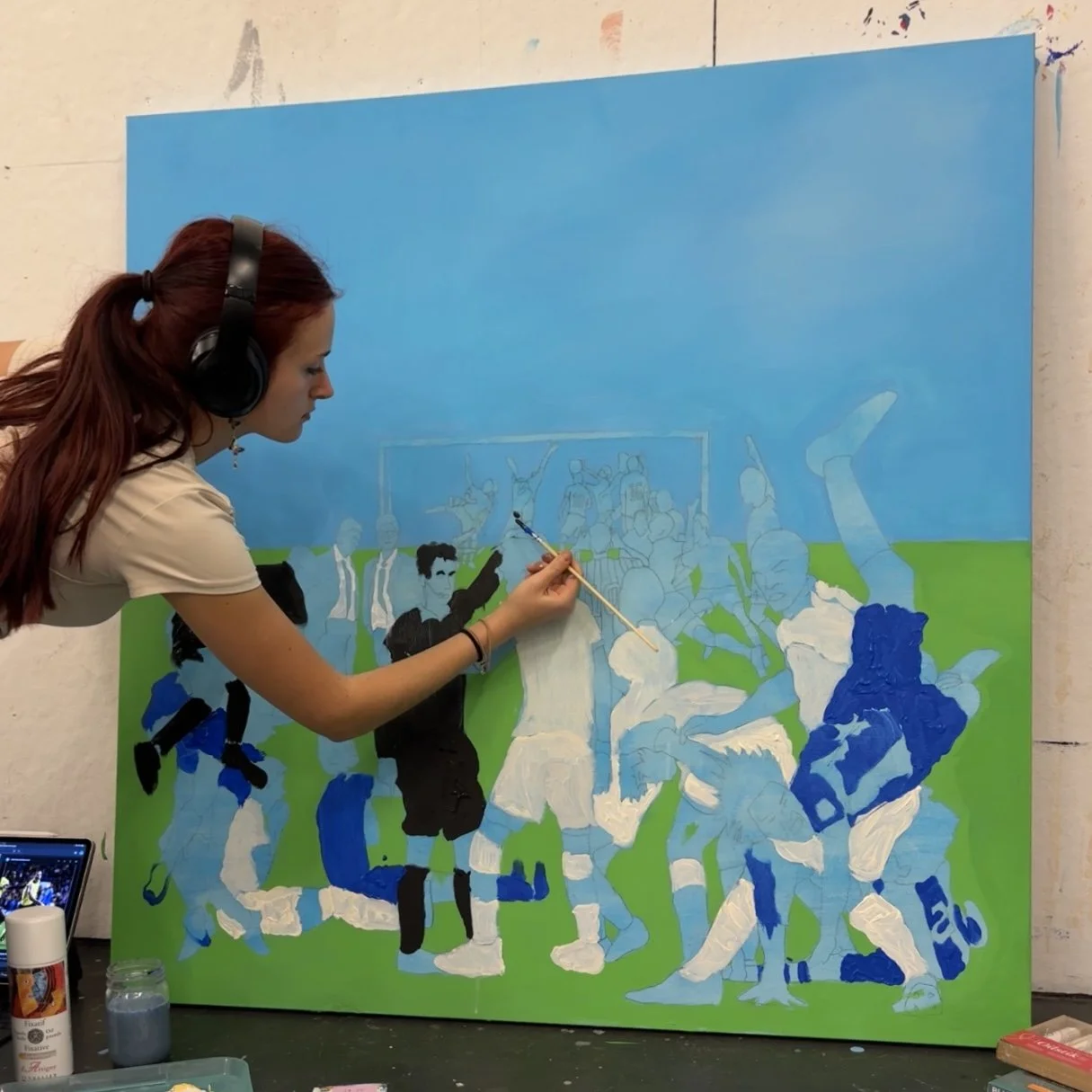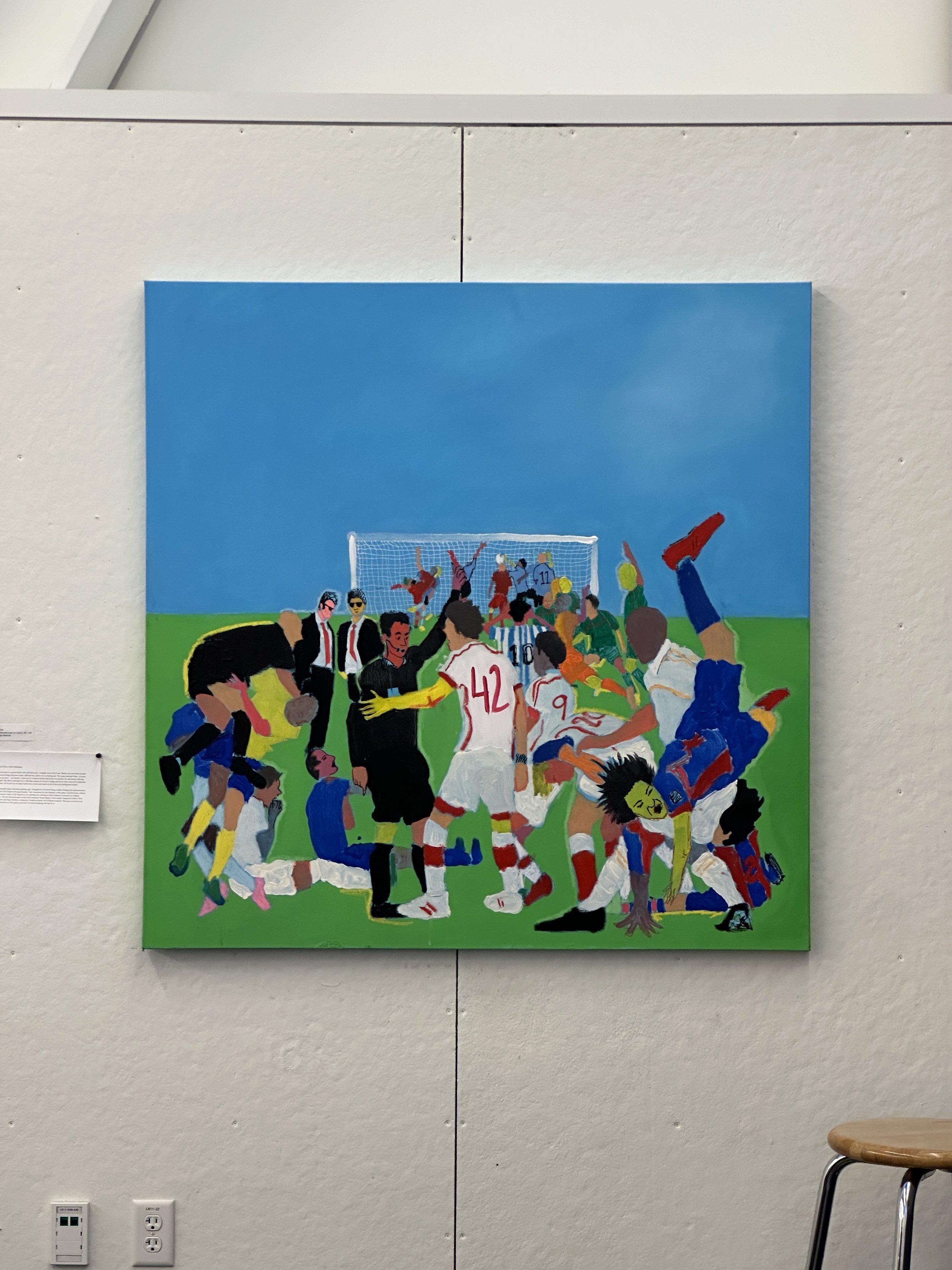 Planning my paintings by first drafting them on procreate has become a routine part of my process. I collected a bunch of controversial moments in soccer history and pieced them together on procreate until I found a adhered to general design principles and that felt interesting. In creating my composition, I learnt a lot about how to move layers and how to work with multiple color palettes while maintaining visual harmony.